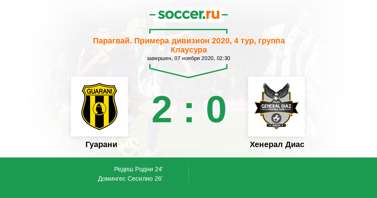 Протокол матча Гуарани против Хенерал Диас