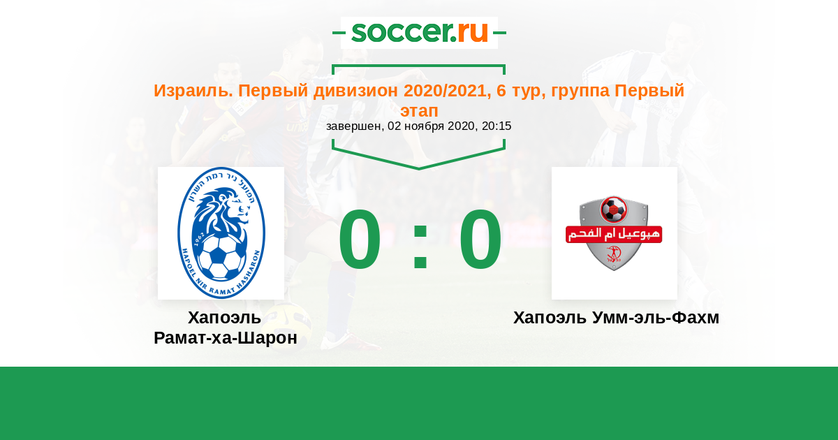 Израиль. Первый дивизион 12.02.2021 Хапоэль Умм-эль-Фахм Логотип футбольный клуб Хапоэль Умм-эль-Фахм 1:1 Логотип футбольный клуб Хапоэль Рамат-ха-Шарон Хапоэль Рамат-ха-Шарон