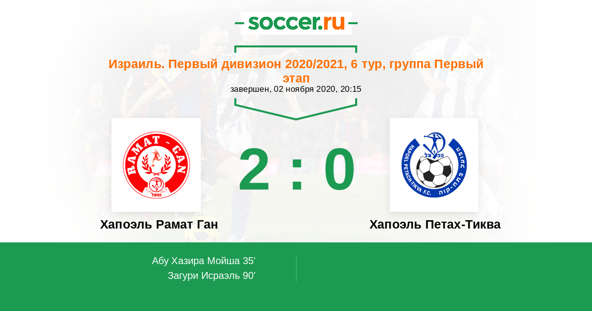 Протокол матча Хапоэль Рамат Ган против Хапоэль Петах-Тиква