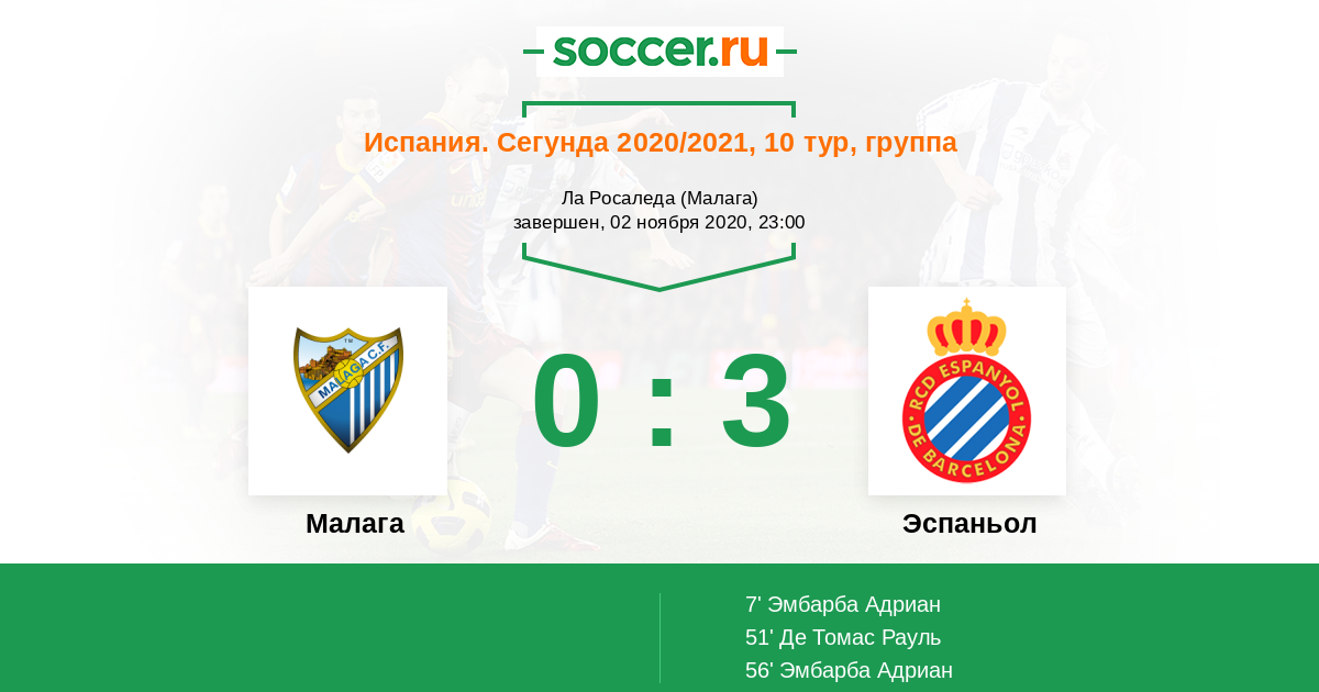 Протокол матча Малага против Эспаньол