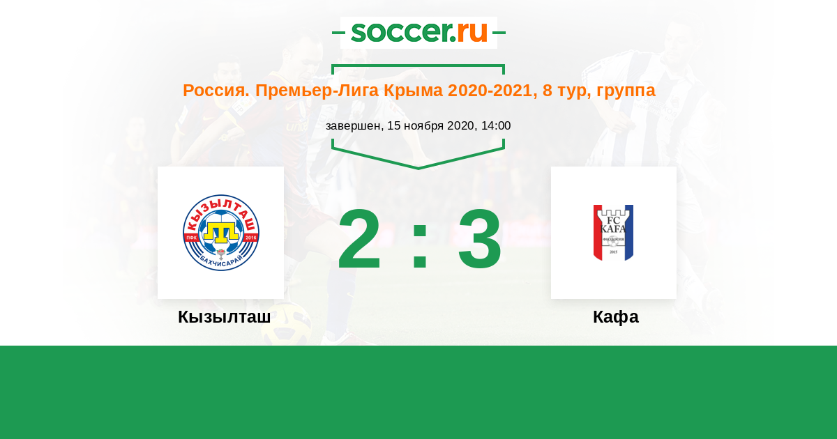 Россия. Премьер-Лига Крыма 07.03.2021 Кафа Логотип футбольный клуб Кафа (Феодосия) 0:3 Логотип футбольный клуб Кызылташ (Бахчисарай) Кызылташ