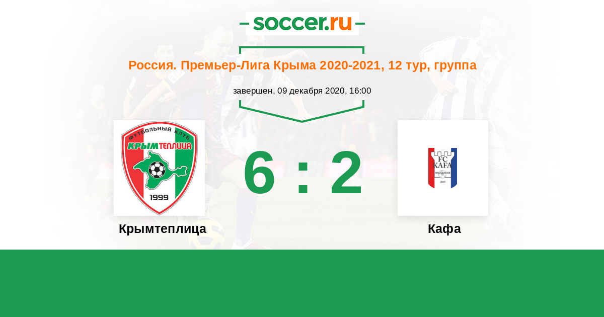Россия. Премьер-Лига Крыма 04.04.2021 Кафа Логотип футбольный клуб Кафа (Феодосия) 0:1 Логотип футбольный клуб Крымтеплица (Молодежное) Крымтеплица