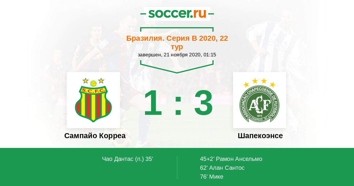 Протокол матча Сампайо Корреа против Шапекоэнсе