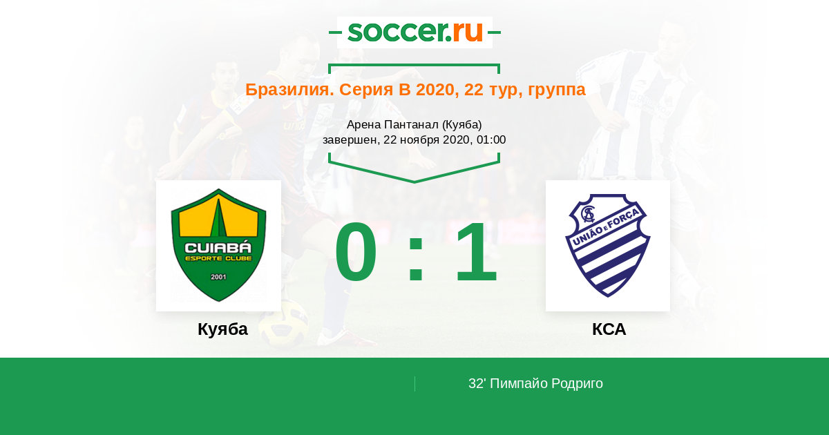 32' (0:1) Пимпайо Родриго (17) (Надсон (8))