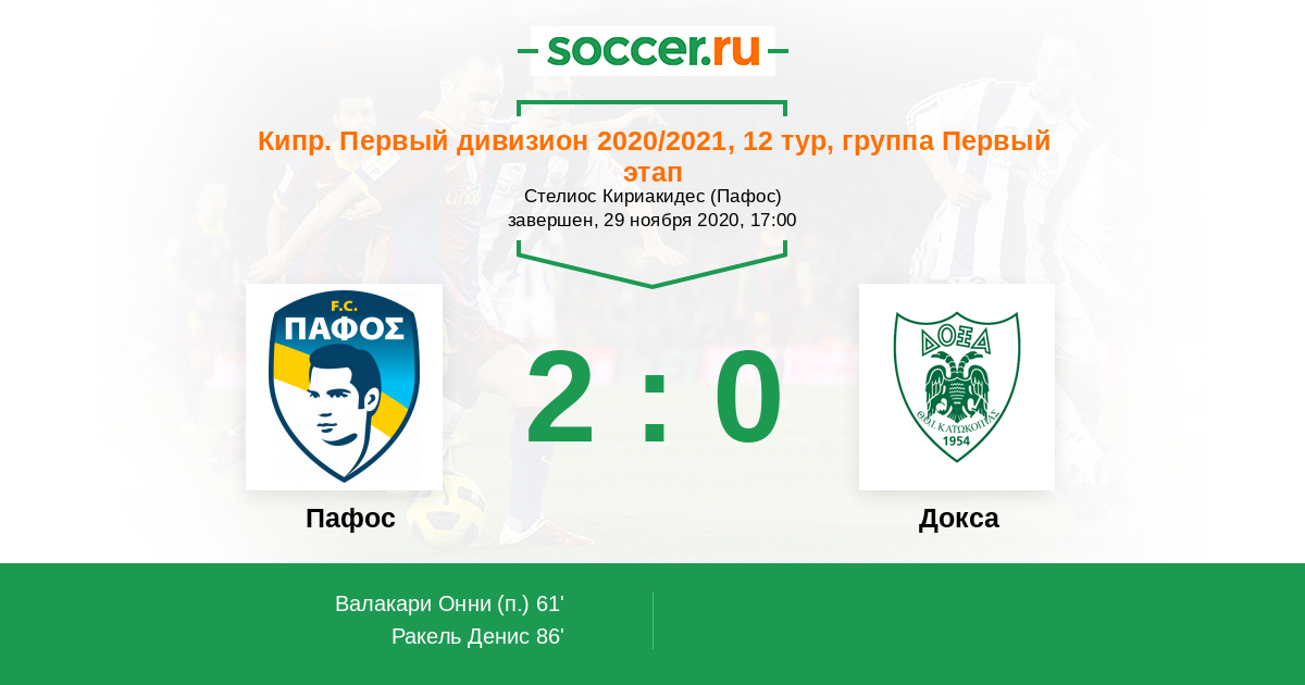 Протокол матча Пафос против Докса