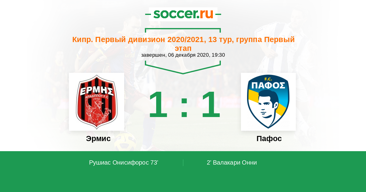 Протокол матча Эрмис против Пафос
