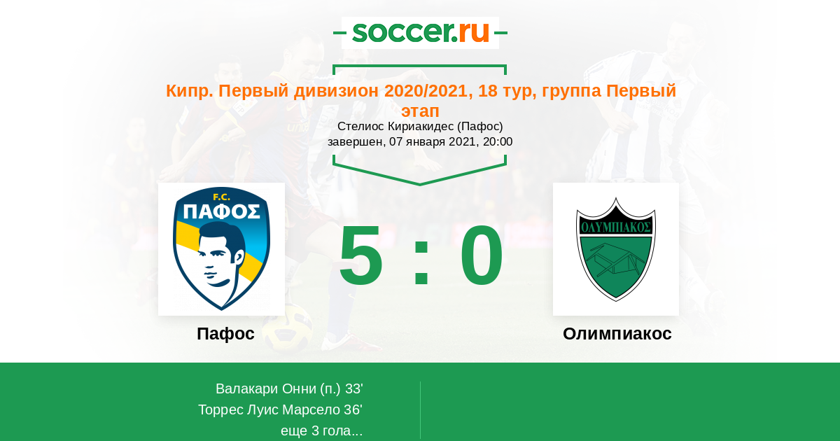 Протокол матча Пафос против Олимпиакос