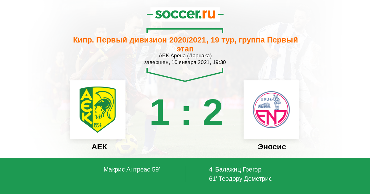Протокол матча АЕК против Эносис