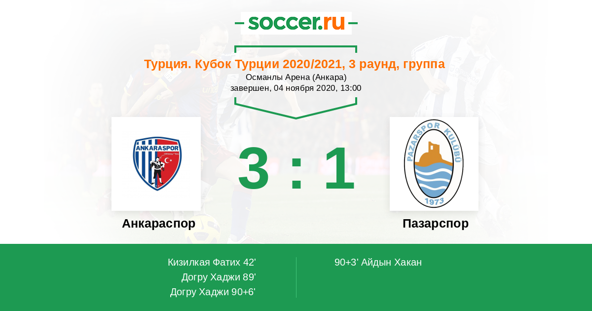 Протокол матча Анкараспор против Пазарспор