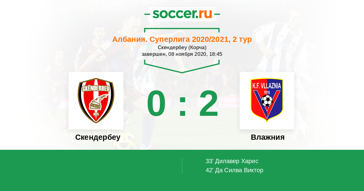 Протокол матча Скендербеу против Влажния