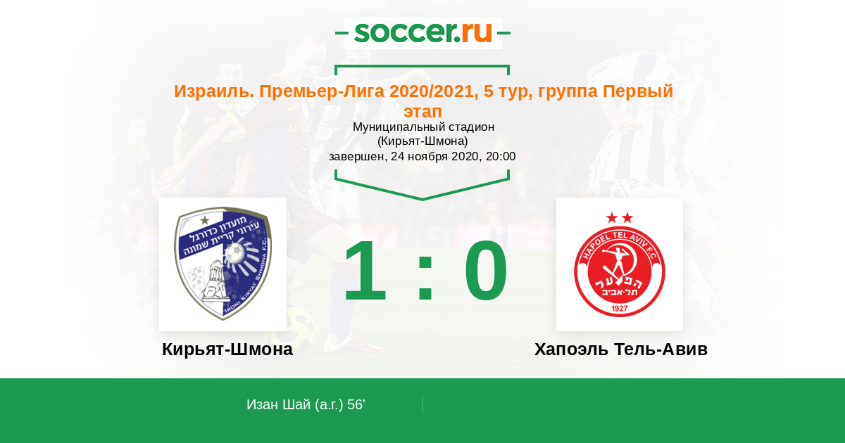 56' (1:0) Автогол Изан Шай (29)