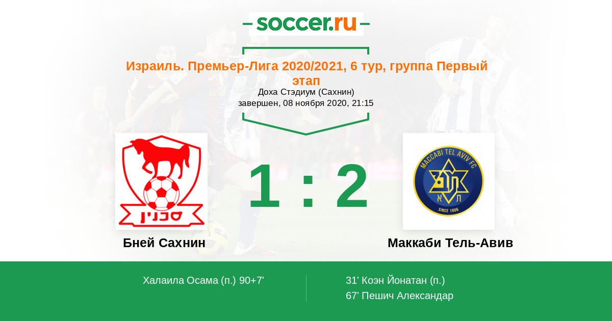 Протокол матча Бней Сахнин против Маккаби Тель-Авив