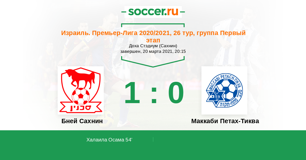 Протокол матча Бней Сахнин против Маккаби Петах-Тиква