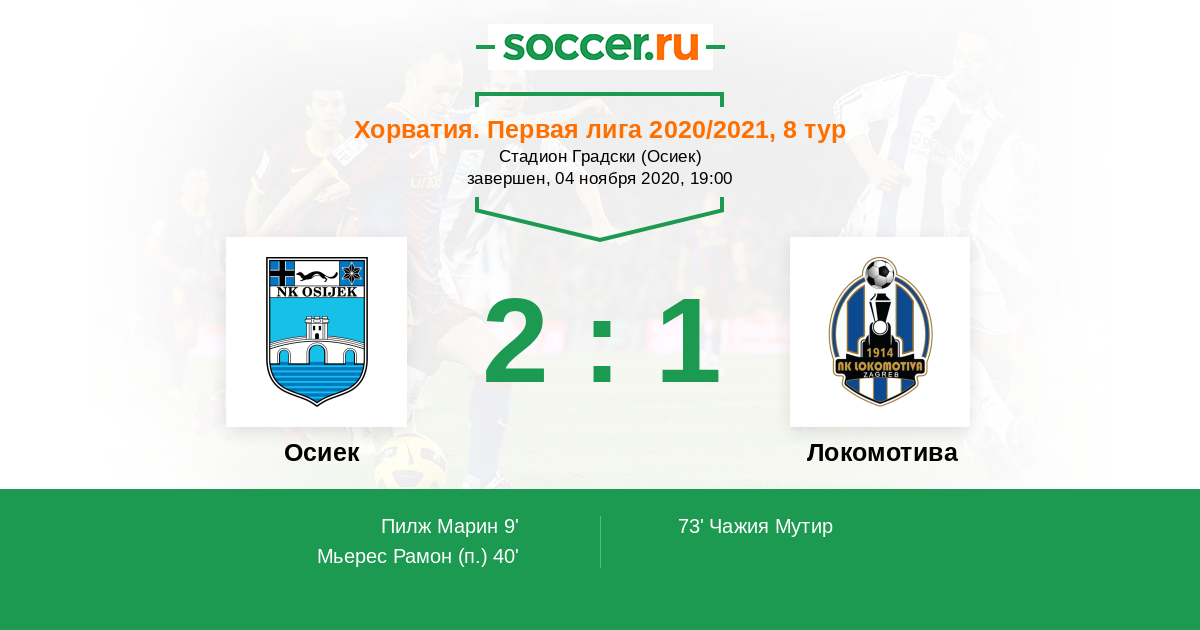 Протокол матча Осиек против Локомотива