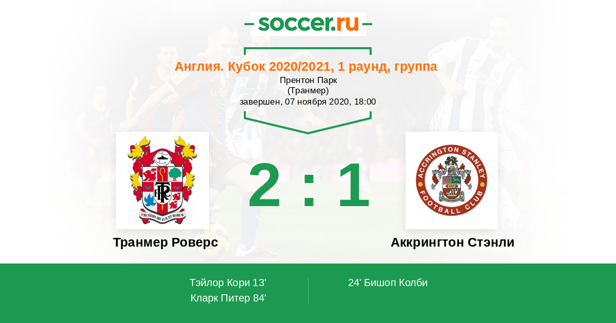 Протокол матча Транмер Роверс против Аккрингтон Стэнли
