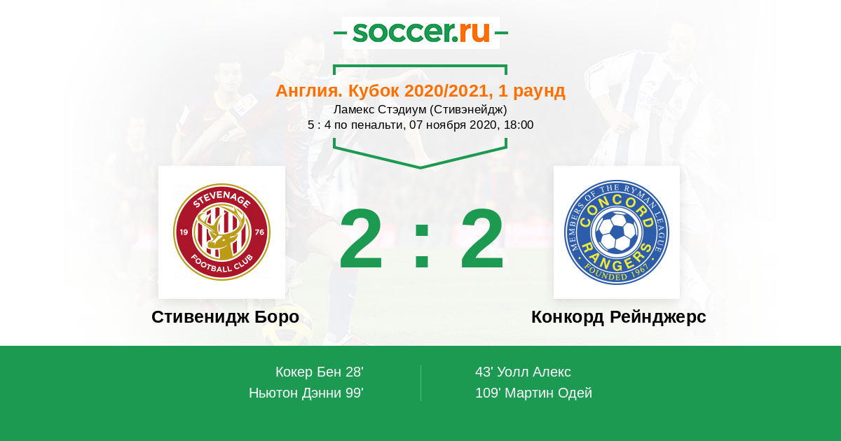 Протокол матча Стивенидж Боро против Конкорд Рейнджерс