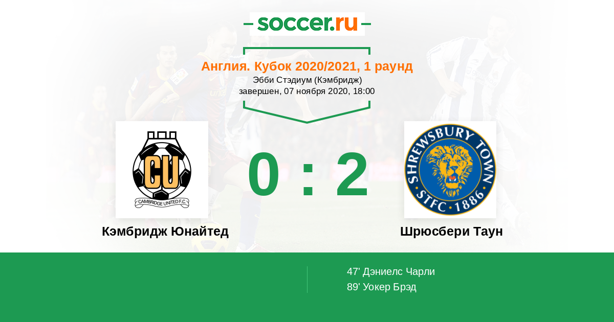 Протокол матча Кэмбридж Юнайтед против Шрюсбери Таун