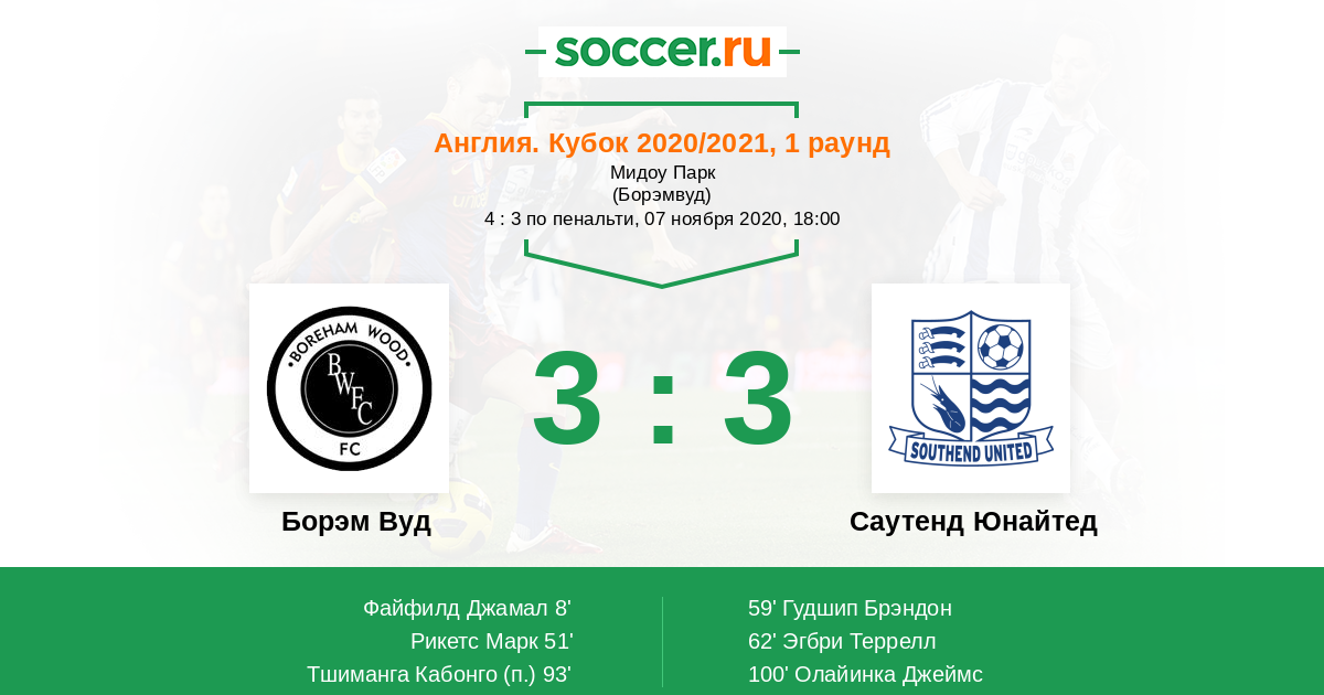 Протокол матча Борэм Вуд против Саутенд Юнайтед