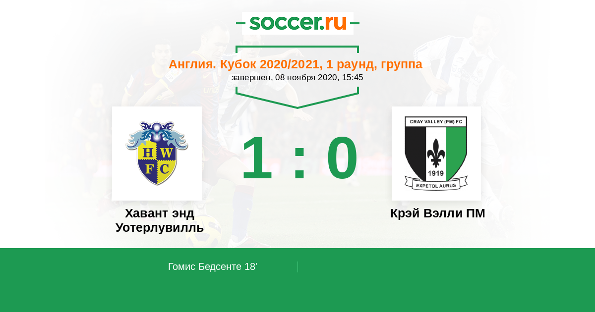 Протокол матча Хавант энд Уотерлувилль против Крэй Вэлли ПМ