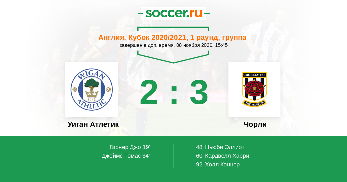 Протокол матча Уиган Атлетик против Чорли