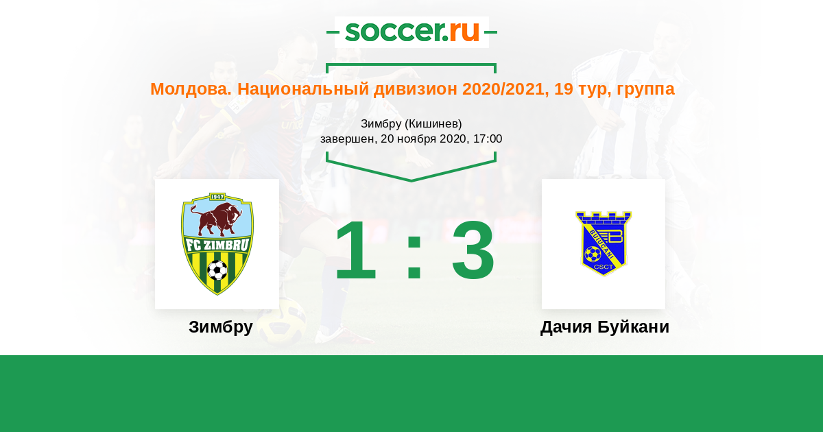 Молдова. Национальный дивизион 19.09.2020 Дачия Буйкани Логотип футбольный клуб Дачия Буйкани (Кишинев) 2:1 Логотип футбольный клуб Зимбру (Кишинев) Зимбру