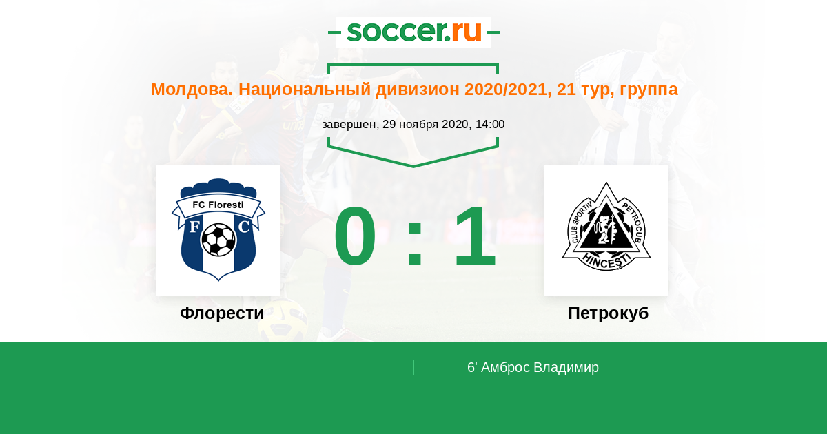 Протокол матча Флорести против Петрокуб