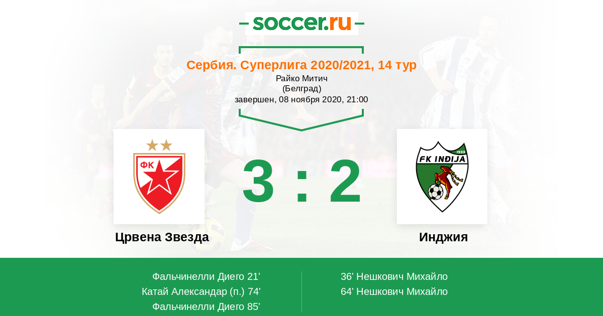 Протокол матча Црвена Звезда против Инджия