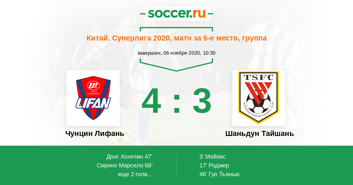Протокол матча Чунцин Лифань против Шаньдун Тайшань