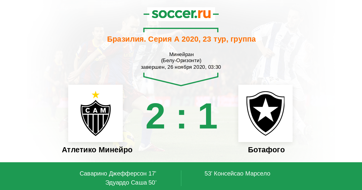 50' (2:0) Эдуардо Саша (18) (Саварино Джефферсон (70))