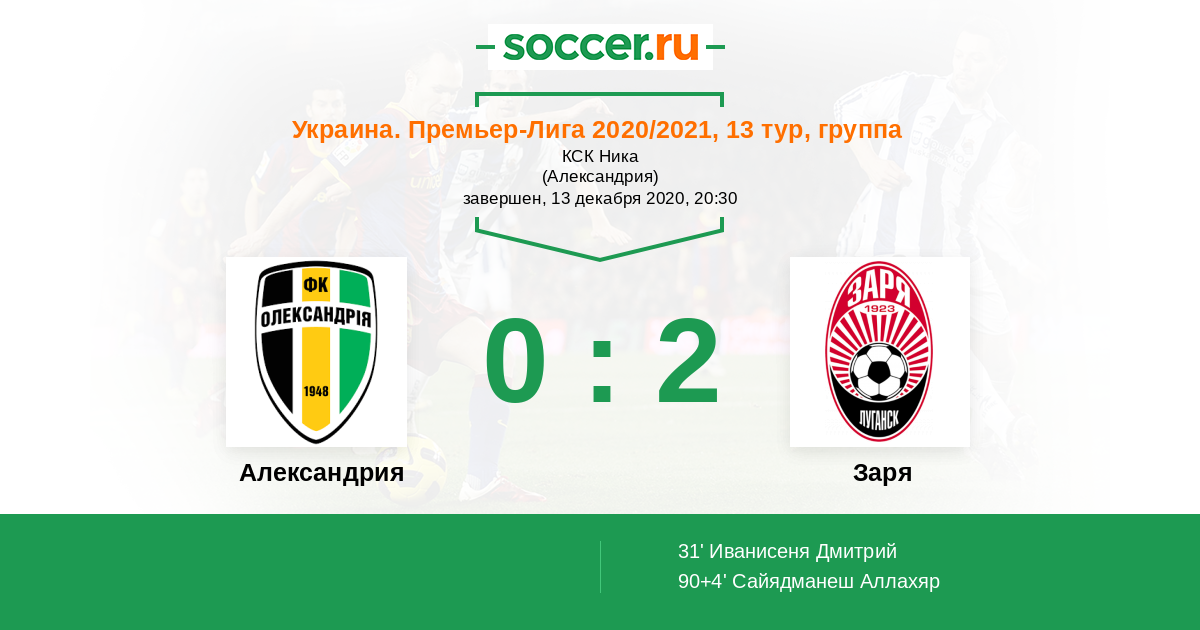 Протокол матча Александрия против Заря