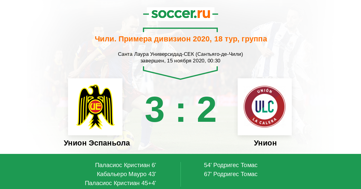 Протокол матча Унион Эспаньола против Унион