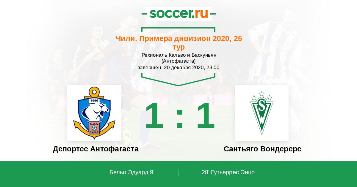 Протокол матча Депортес Антофагаста против Сантьяго Вондерерс