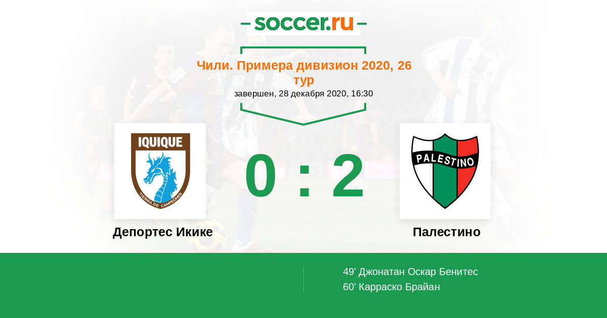 Протокол матча Депортес Икике против Палестино