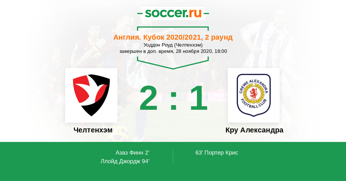 Протокол матча Челтенхэм против Кру Александра