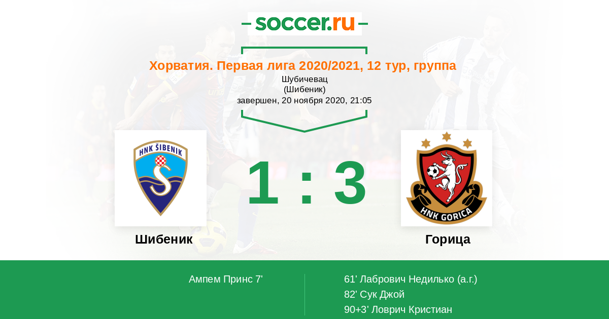 Протокол матча Шибеник против Горица