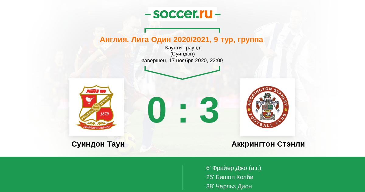 Протокол матча Суиндон Таун против Аккрингтон Стэнли