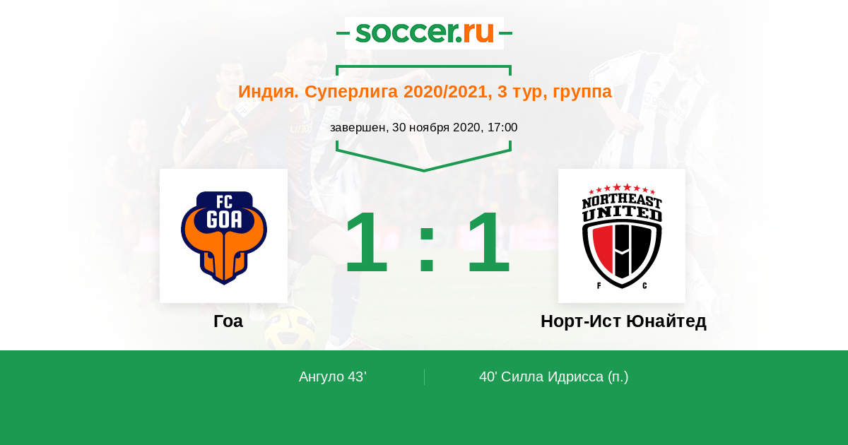 Протокол матча Гоа против Норт-Ист Юнайтед
