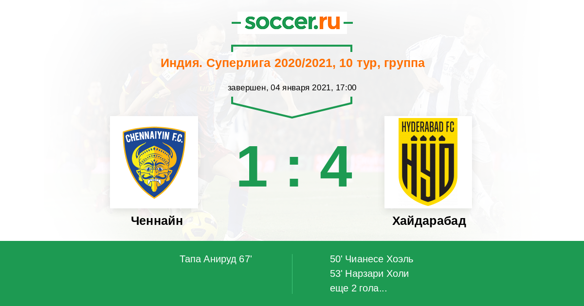 Протокол матча Ченнайн против Хайдарабад