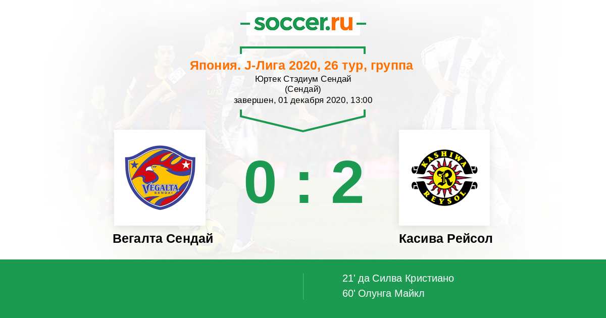 Протокол матча Вегалта Сендай против Касива Рейсол