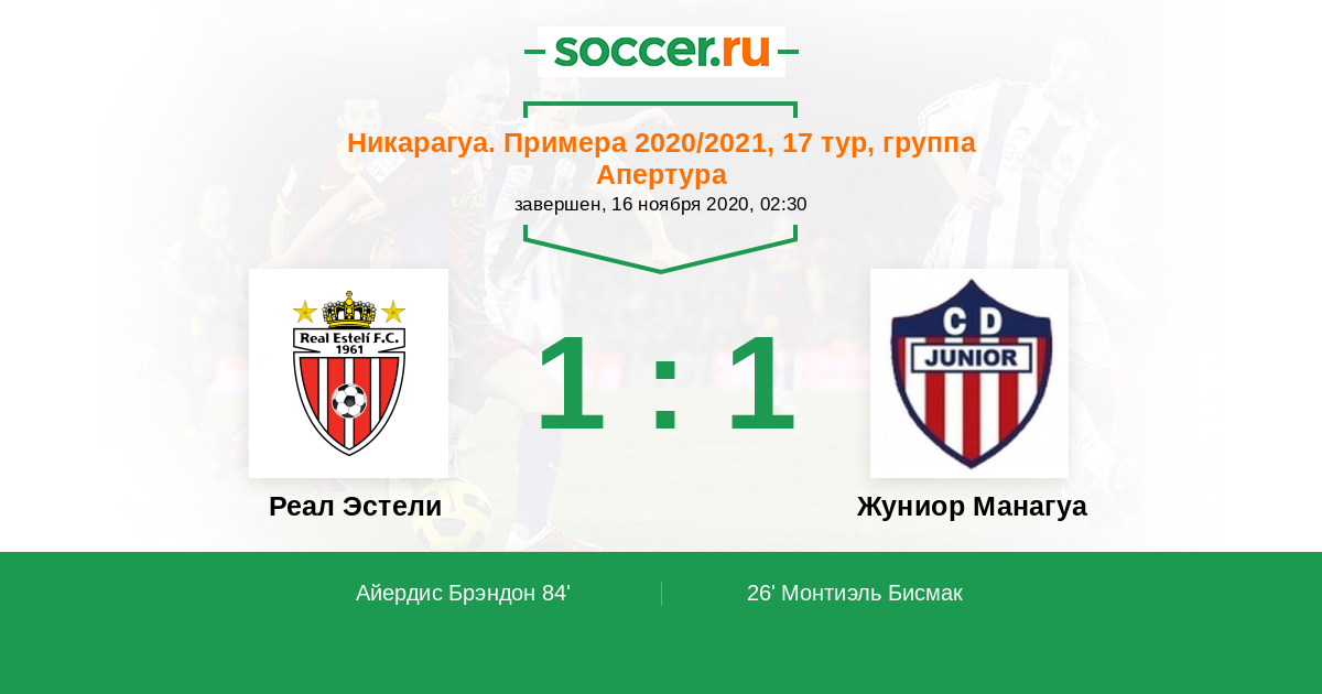 Протокол матча Реал Эстели против Жуниор Манагуа