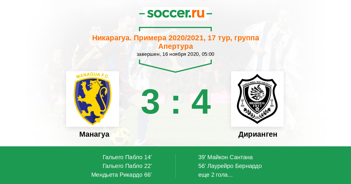 Протокол матча Манагуа против Дирианген