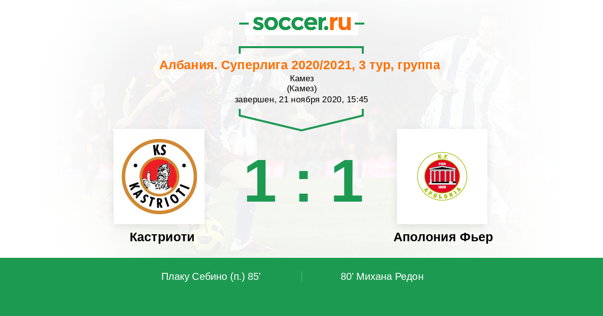 Протокол матча Кастриоти против Аполония Фьер