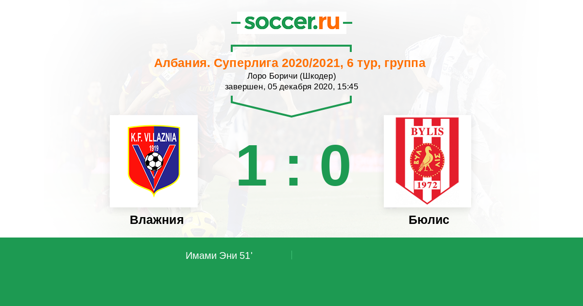 Протокол матча Влажния против Бюлис