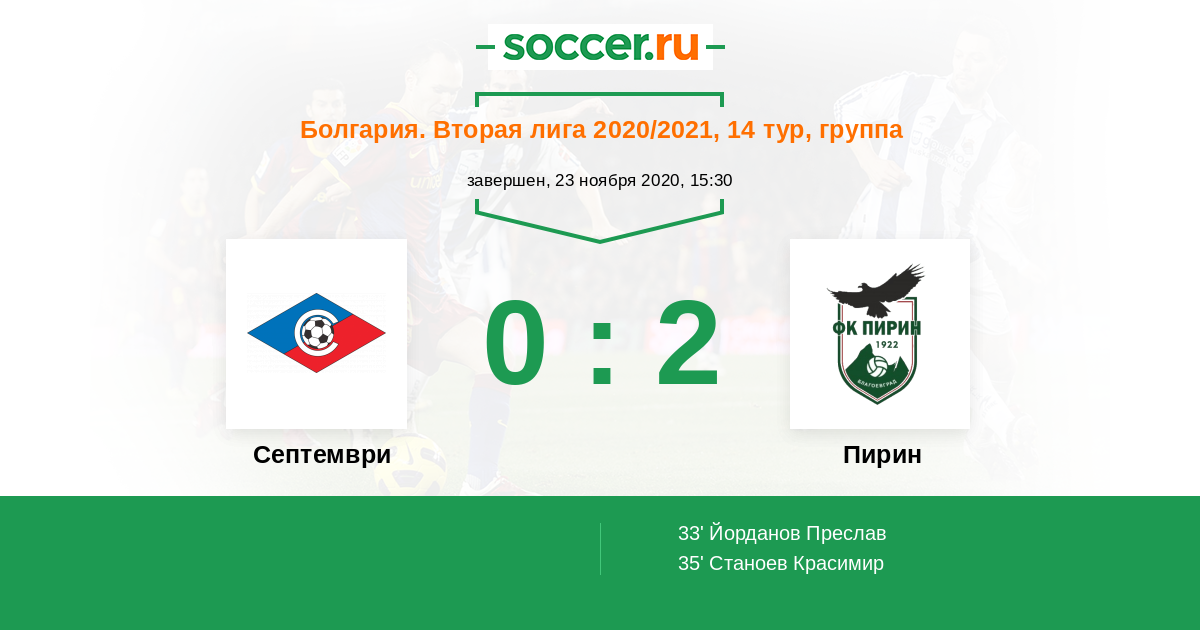 Протокол матча Септември против Пирин