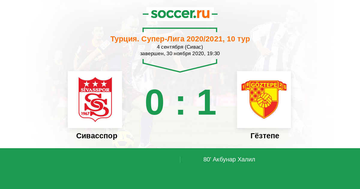 Протокол матча Сивасспор против Гёзтепе