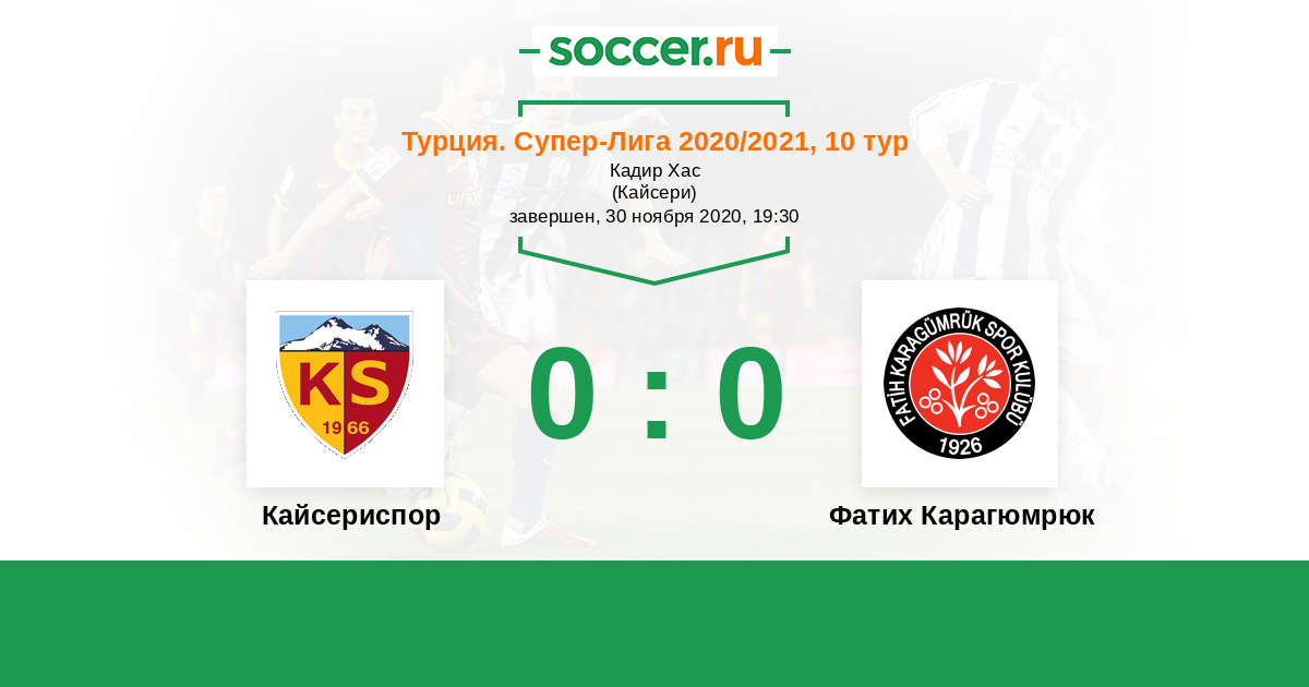 Протокол матча Кайсериспор против Фатих Карагюмрюк