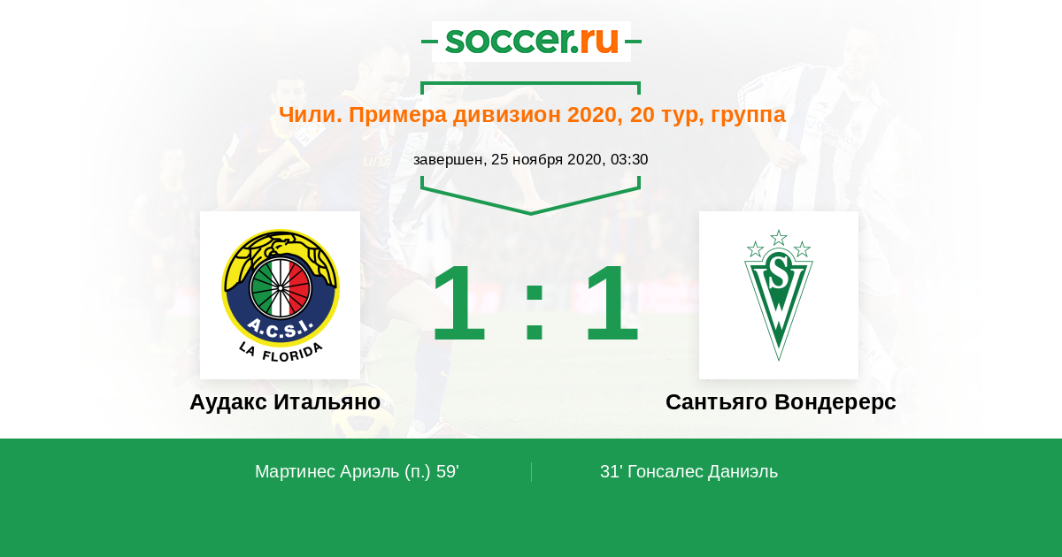 Протокол матча Аудакс Итальяно против Сантьяго Вондерерс