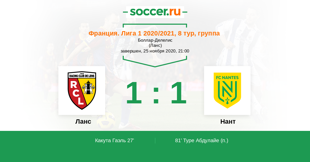 Протокол матча Ланс против Нант