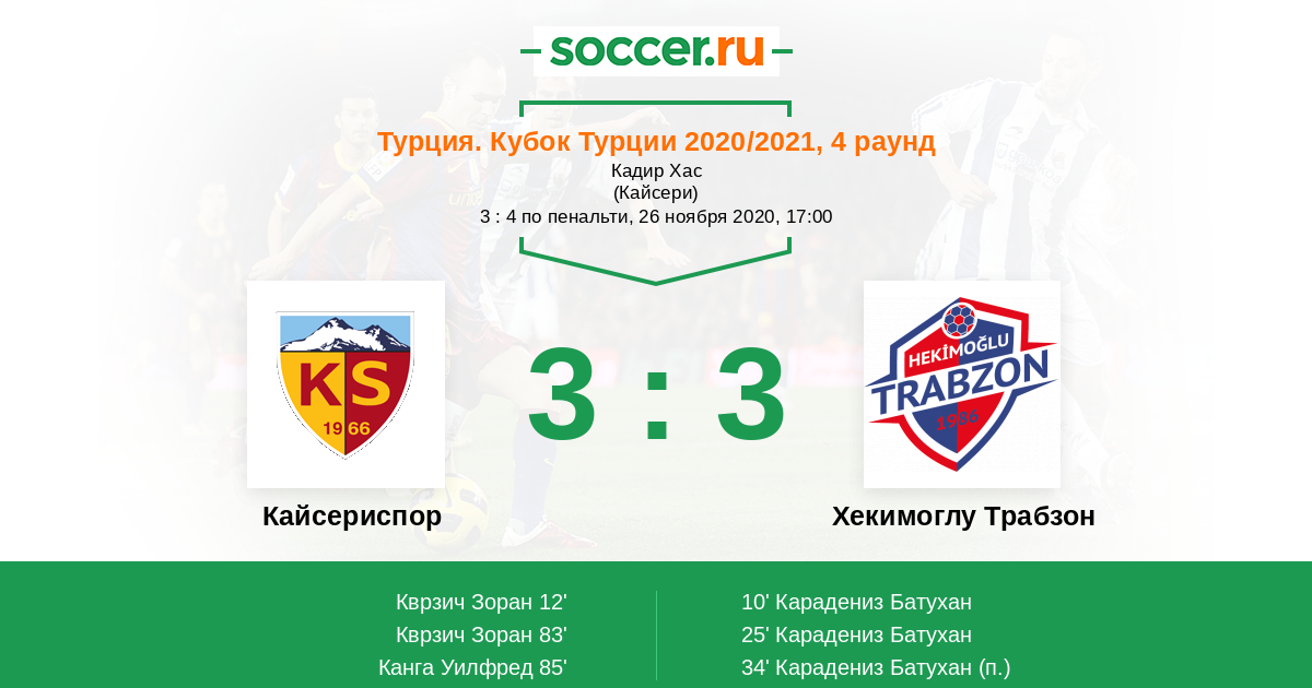 34' (1:3) Карадениз Батухан (90)