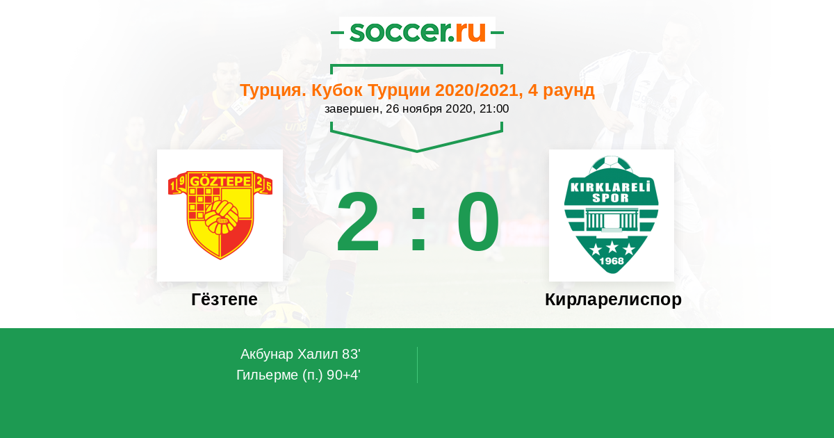 Протокол матча Гёзтепе против Кирларелиспор